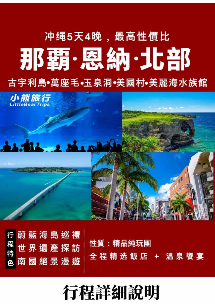 • 主要線路:那霸機場 → 沖繩北部 (美麗海/本部/名護) → 沖繩中西部 (恩納/古宇利島) → 沖繩南部 (玉泉洞/南城) → 那霸市區